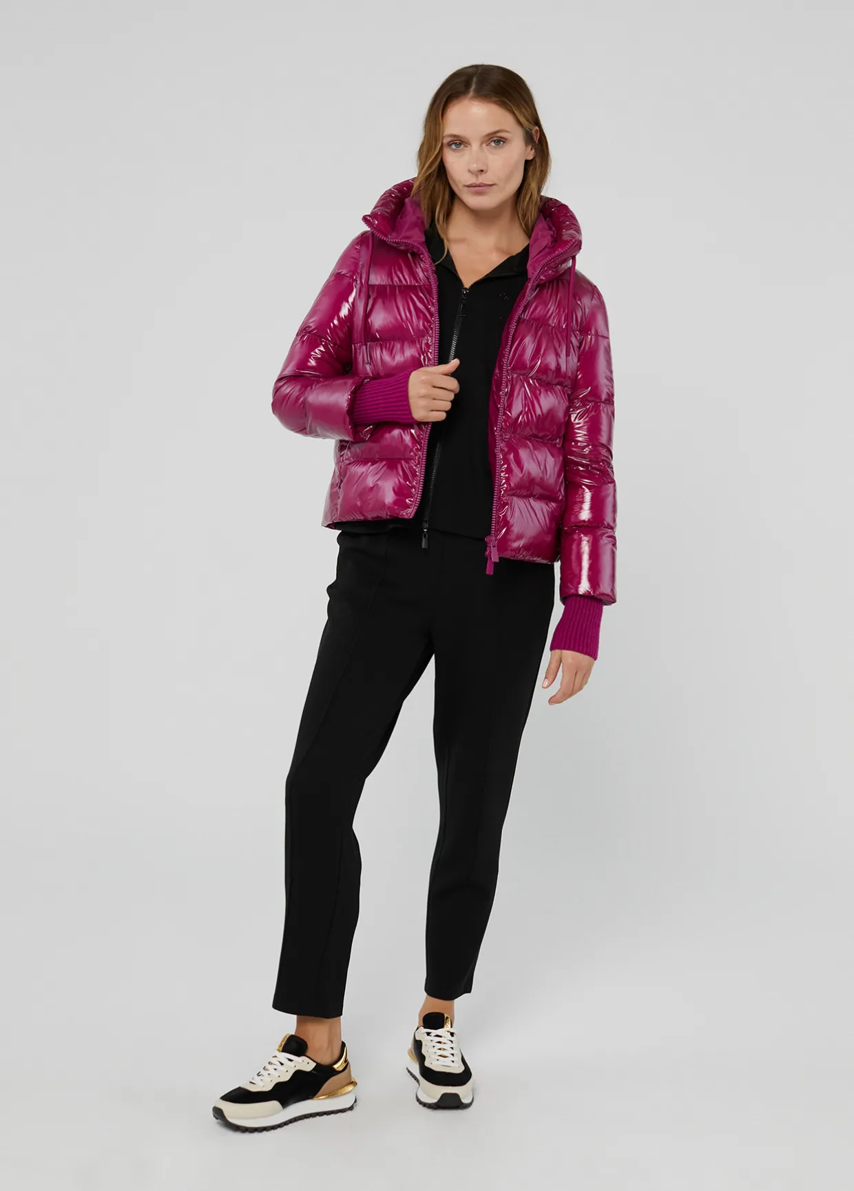 Anorak acolchado y con capucha. Cerrado con cremallera de doble carro. Bolsillos laterales. Puños de punto a tono.