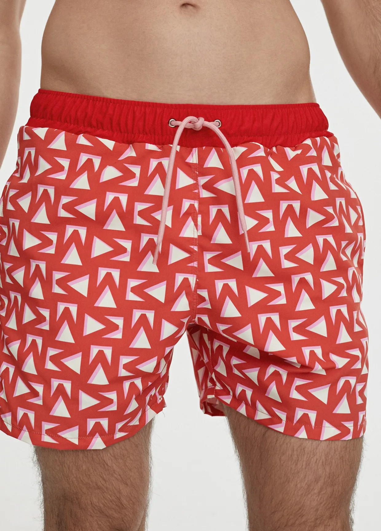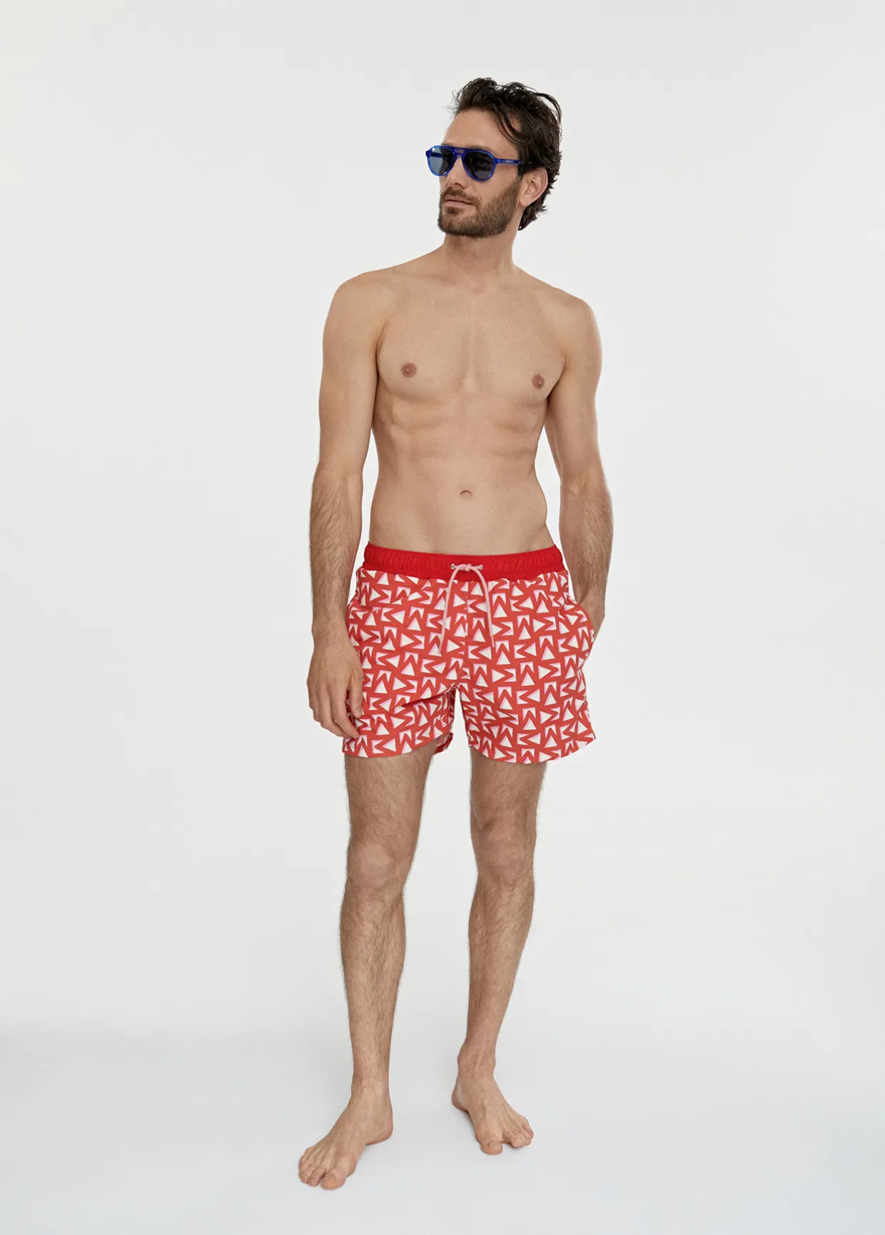 Bañador de hombre con estampado Paisley combinado con animal print en parte goma cintura. Cordón ajustable y bolsillos laterales y trasero.