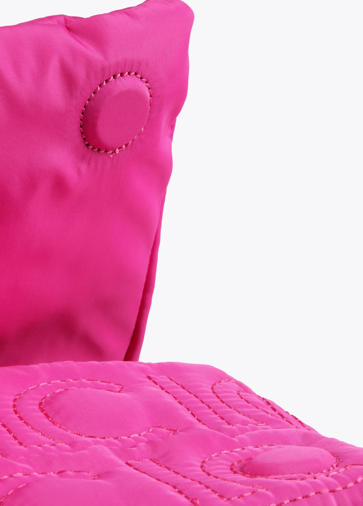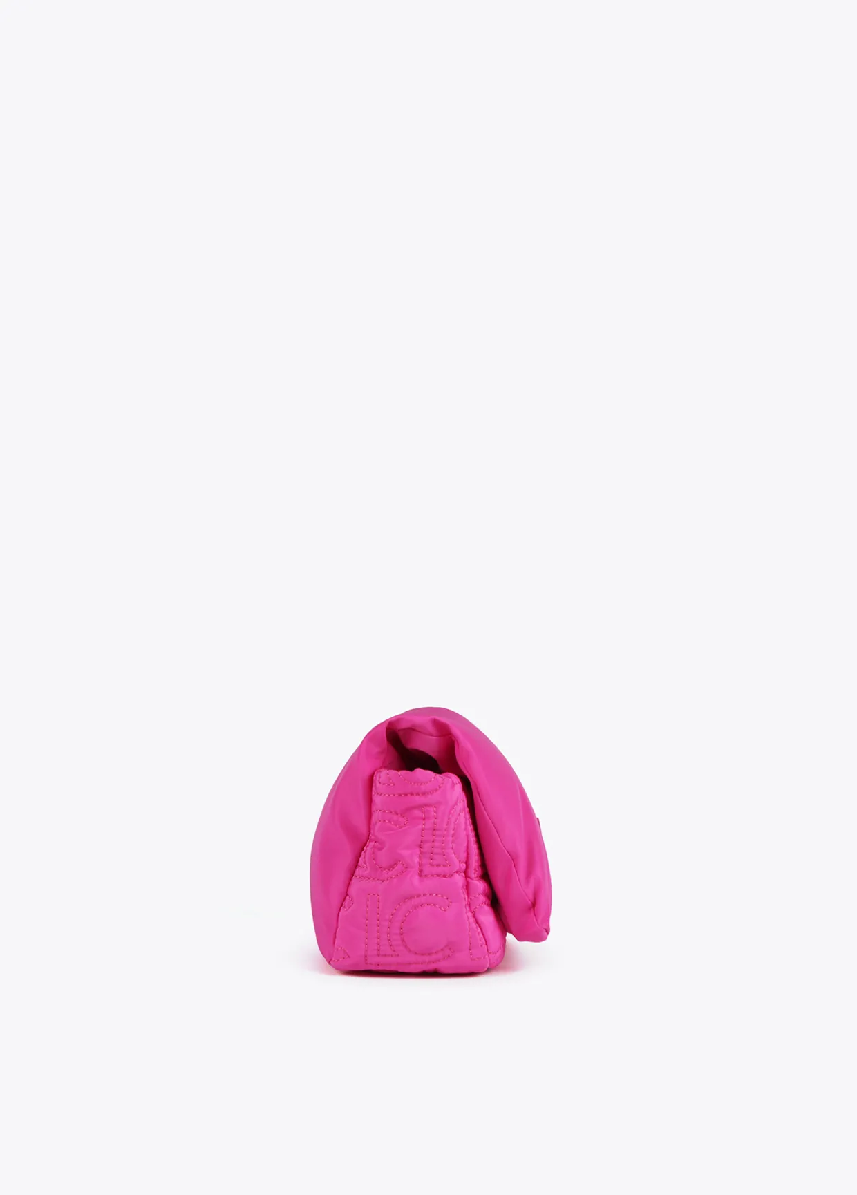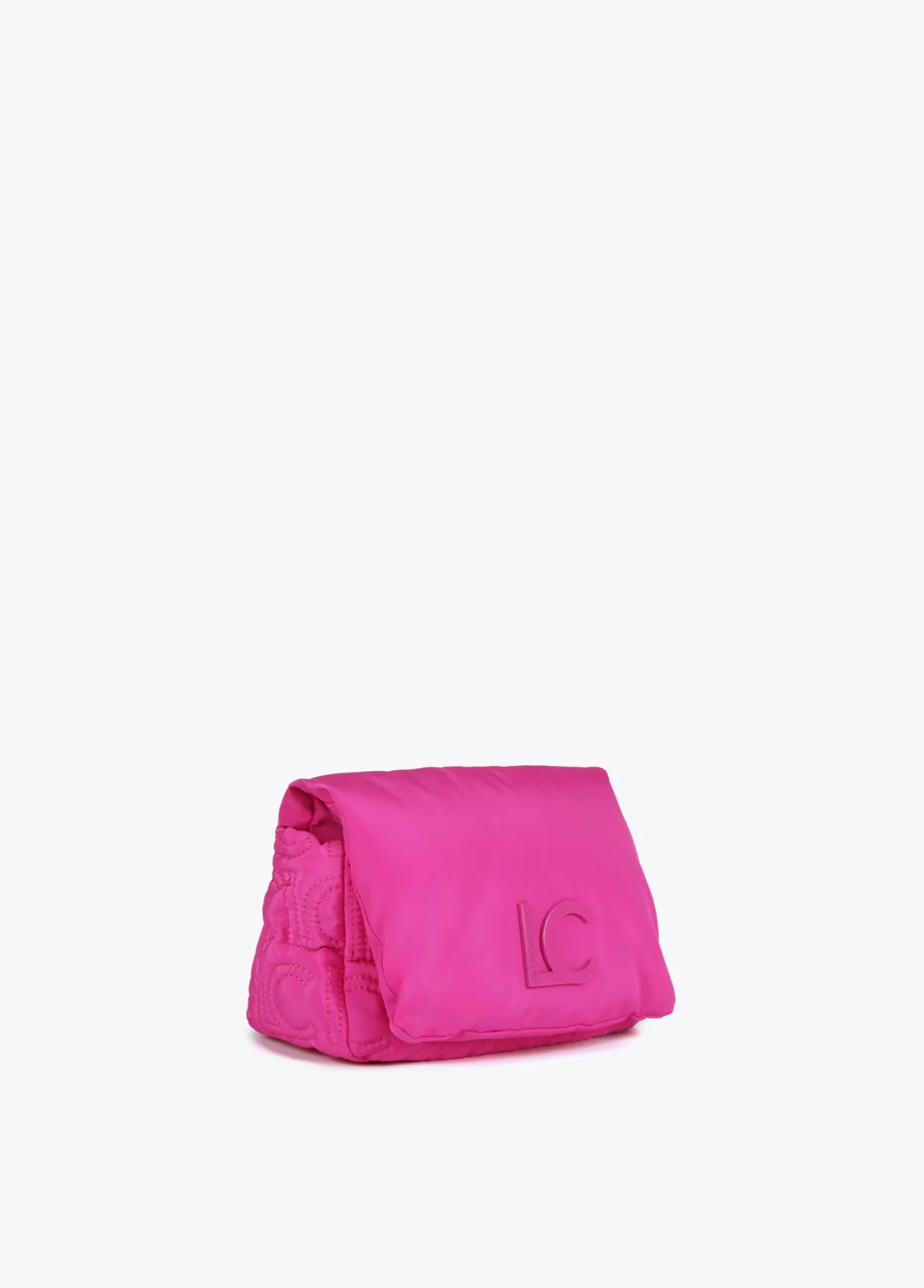 Bolso tipo bandolera acolchada de nylon con monograma bordado. Asa bandolera ajustable y extraíble y cierre en solapa con botones imantados.