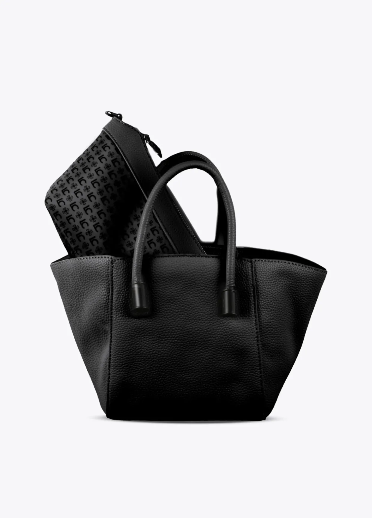 Bolso bandolera tipo mini shopper efecto piel granulada. Asas de mano y asa bandolera ajustable y extraíble. Detalle neceser interior logotipado con cremallera.