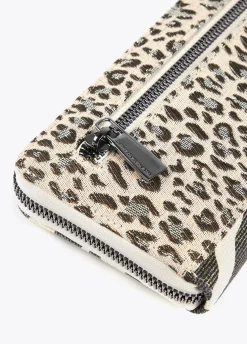 Billetero grande con estampado animal zebra. Cierre con cremallera, bolsillo exterior y letras logo doradas en parte frontal.