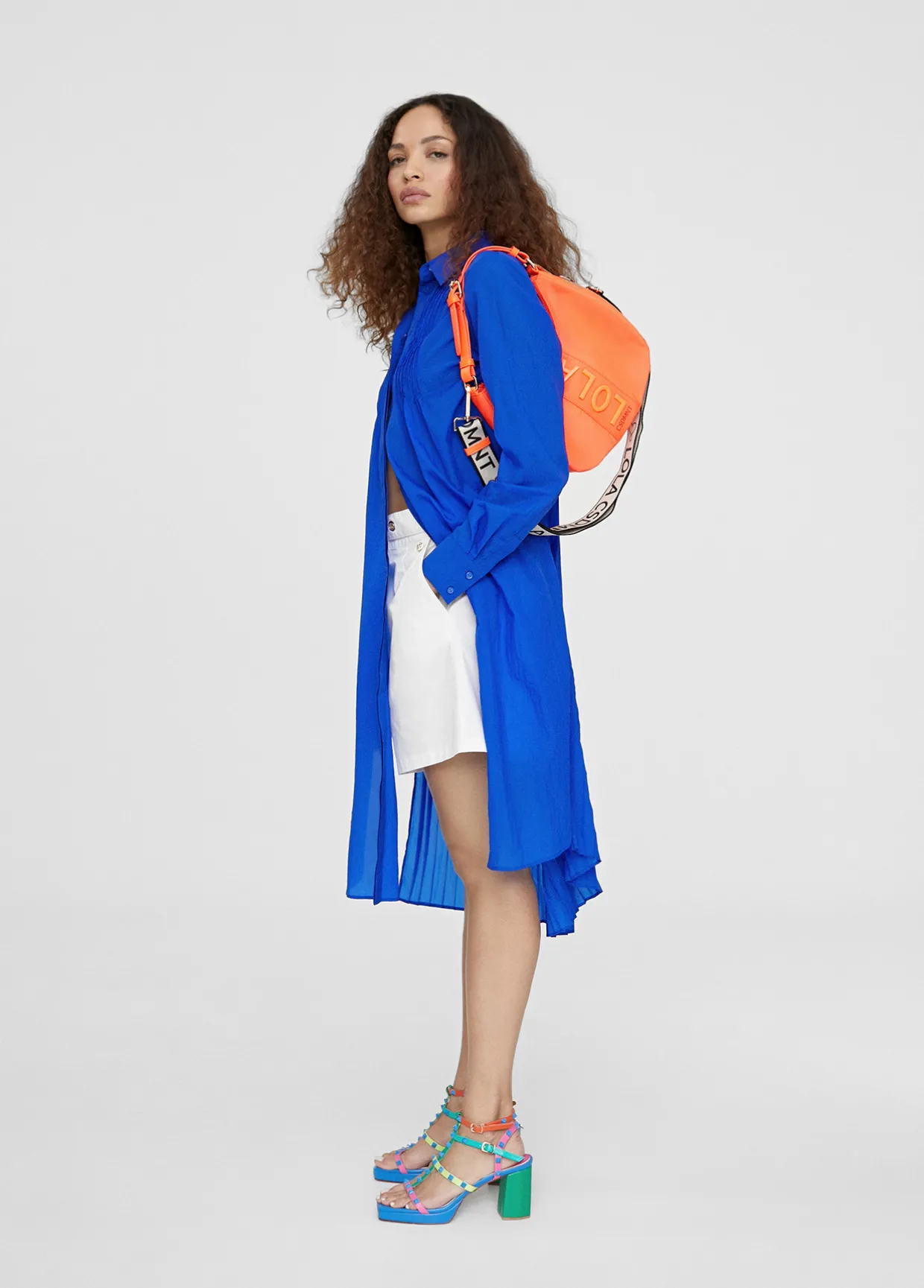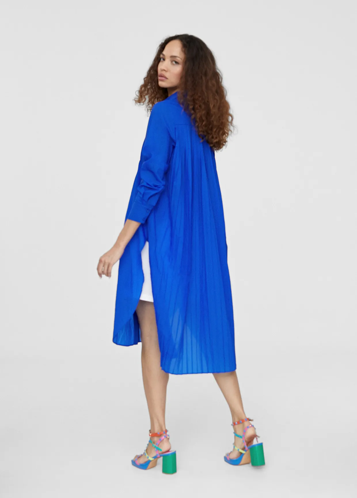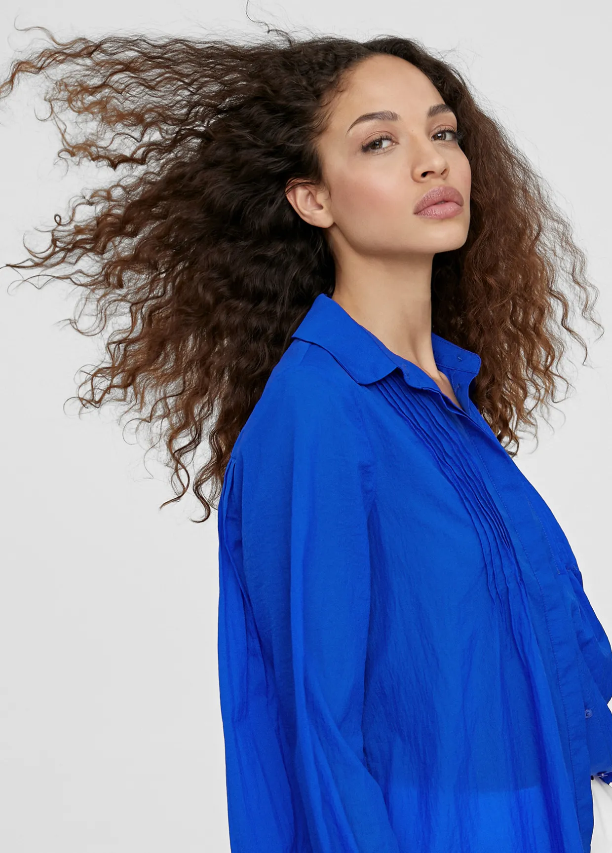 Blusón largo monocolor. Cuello y puños camiseros. Detalle de jaretas en pecho. Aberturas laterales en bajo.