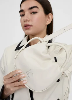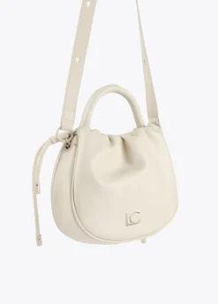 Bolso bandolera en efecto piel con logo en parte frontal. Cierre de cordón fruncido y botón imantado. Asa de mano y asa bandolera ajustable y extraible.