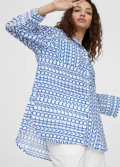 Camisa oversize logotipada . Cuello camisero y puño en mangas. Cierre con botones y aberturas laterales. Pliegue en espalda.