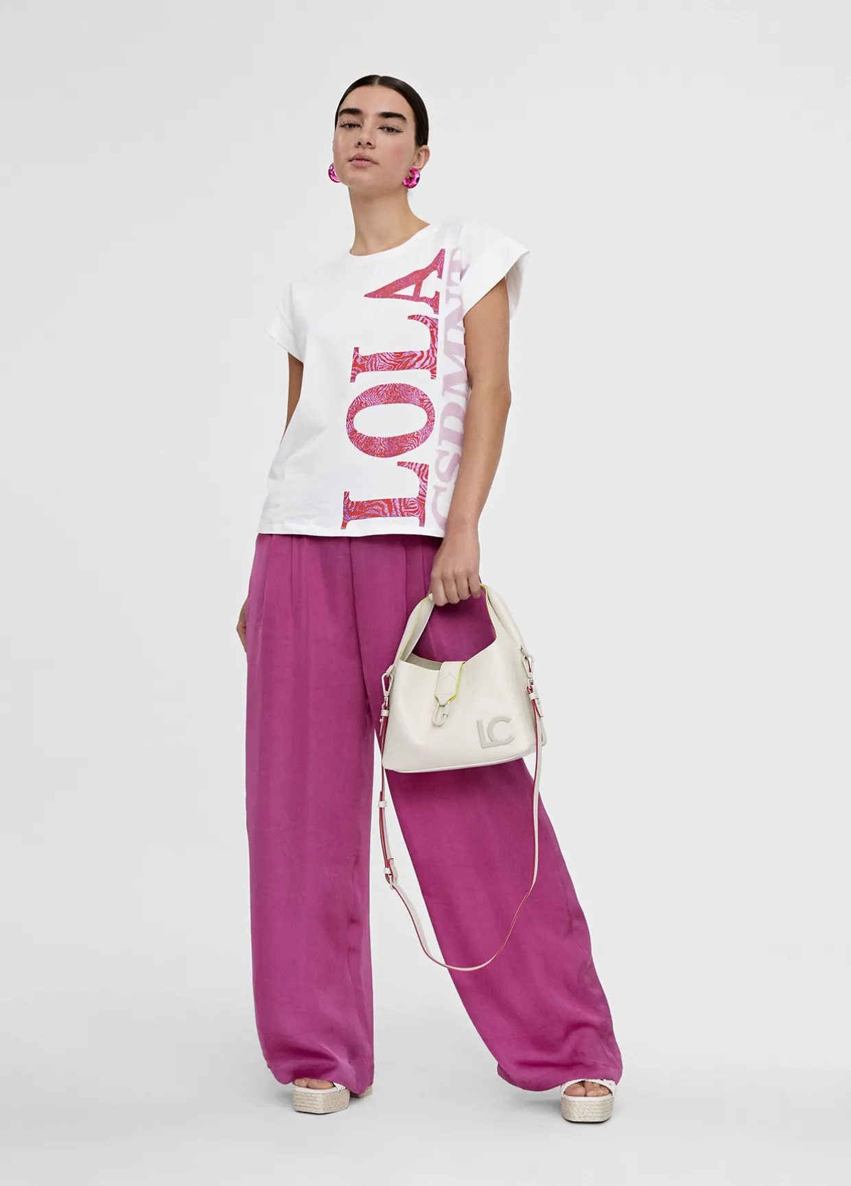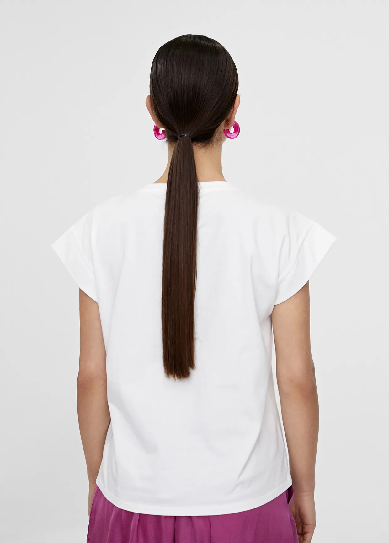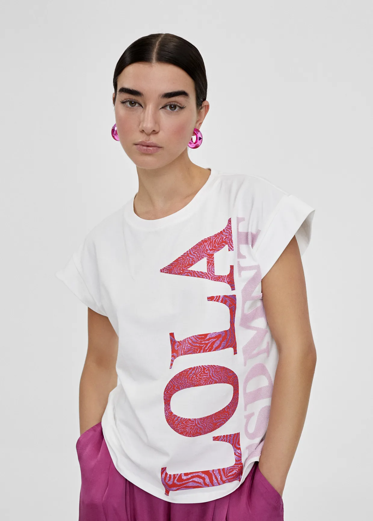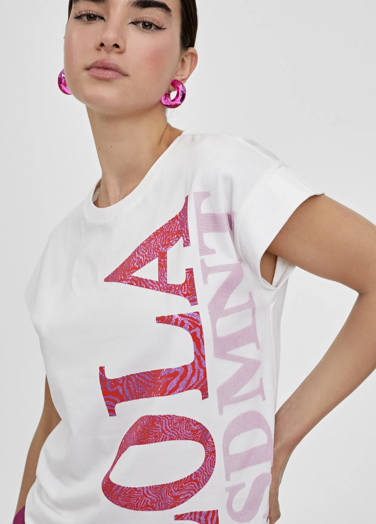 Camiseta cuello redondo y manga caida. Posicionado lateral de logo en estampado animal print color.