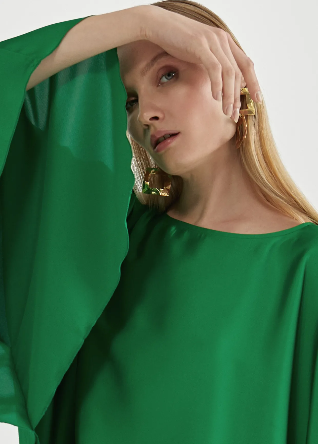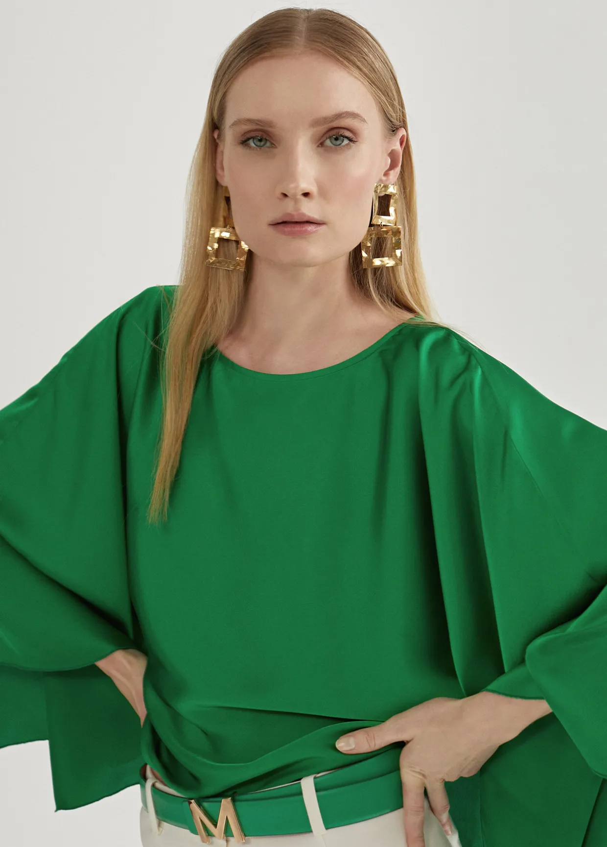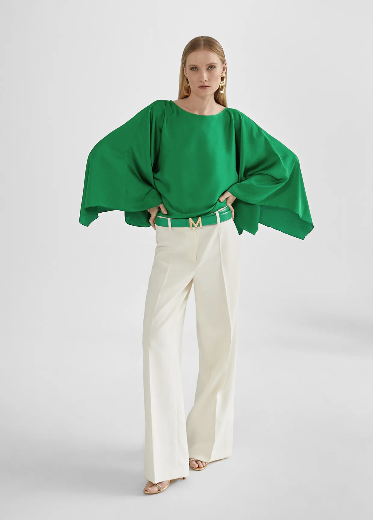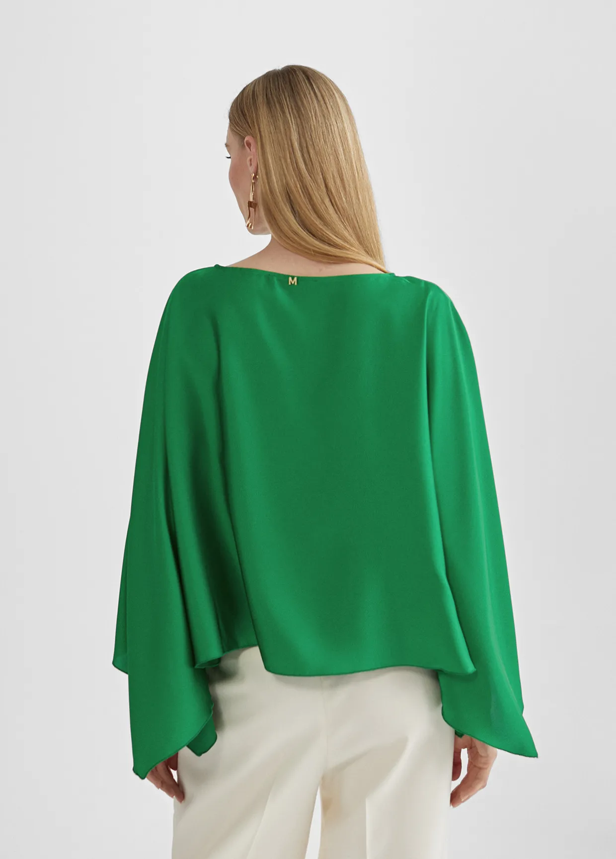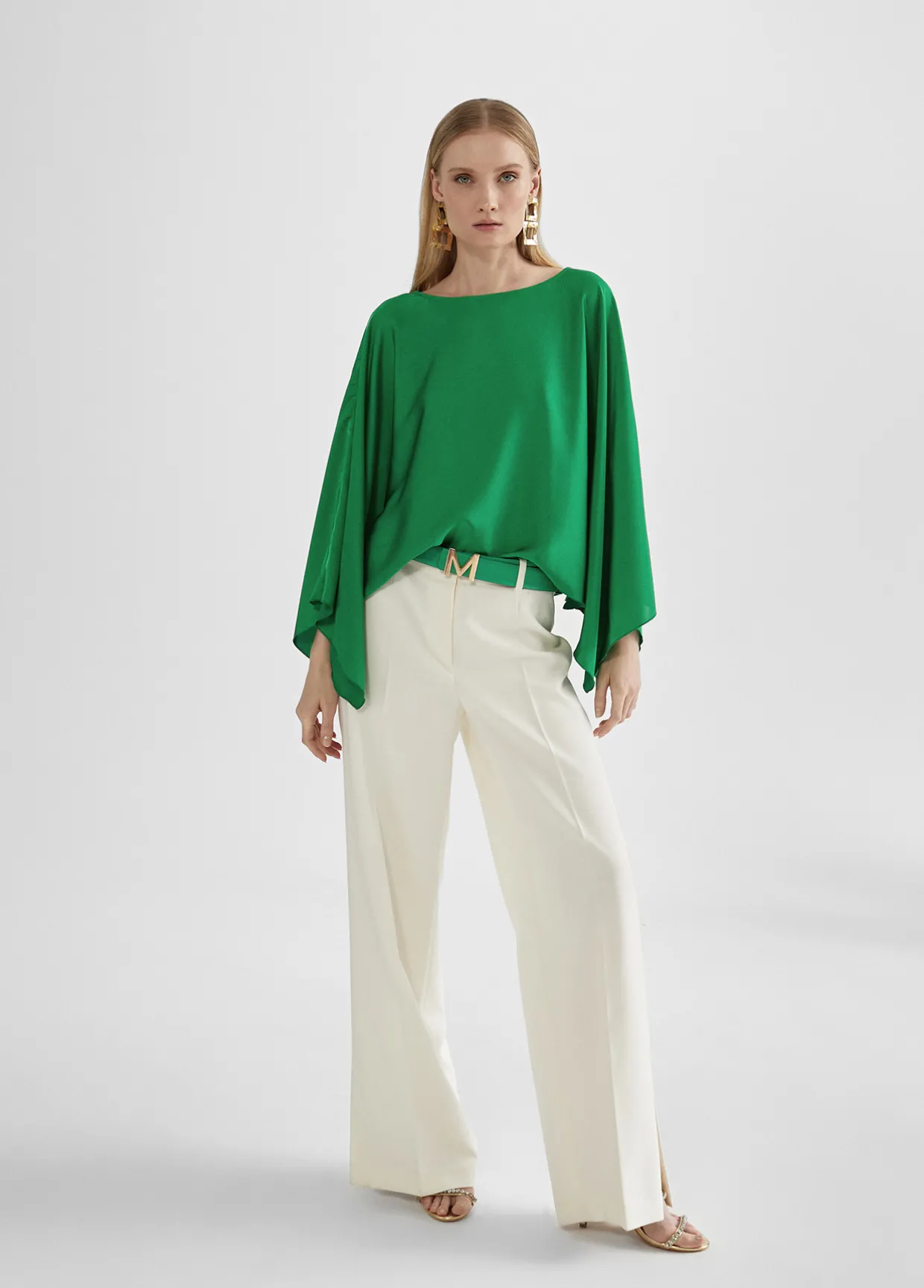 Capa tipo blusa con mangas. Tejido fluido y larga hasta cintura.