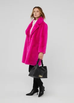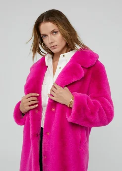 Chaqueta de pelo en color. Cuello solapa y bolsillos laterales. Cierre tipo snaps internos. Forro en animal print.