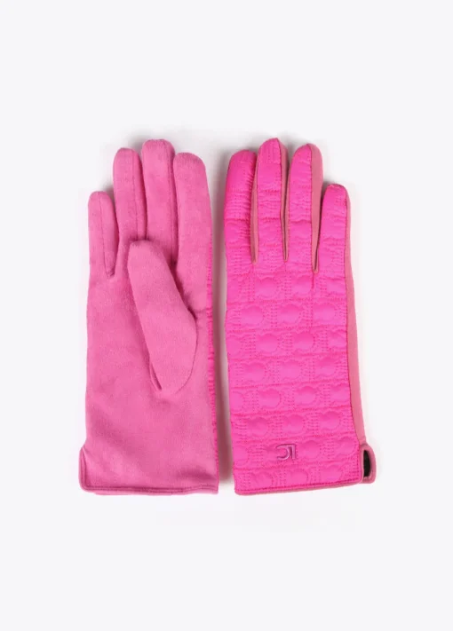 Guantes acolchados de nylon con monograma bordado y letras logo lacadas en parte superior.