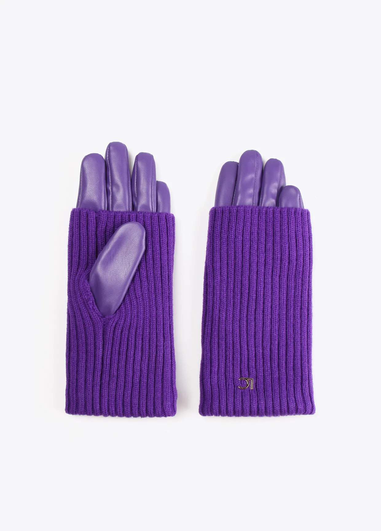 Guantes en efecto piel con puños de canalé combinados. Detalle letras logo doradas.