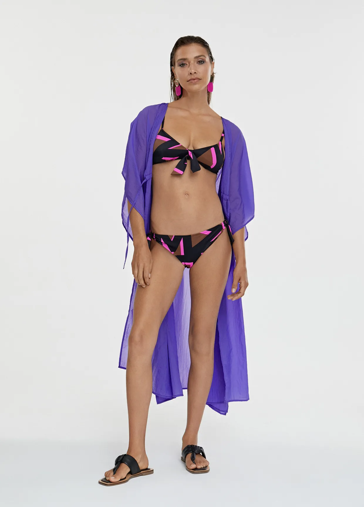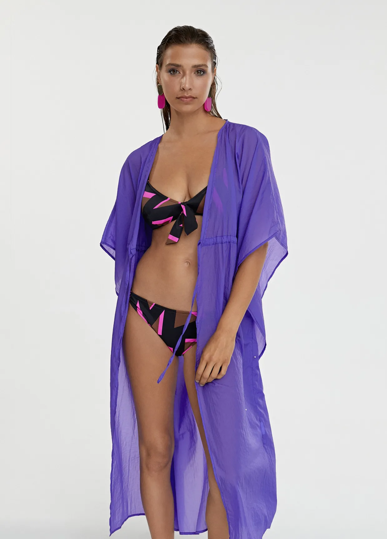 Kaftan largo fluido de manjas tipo kimono y ajustable en cintura