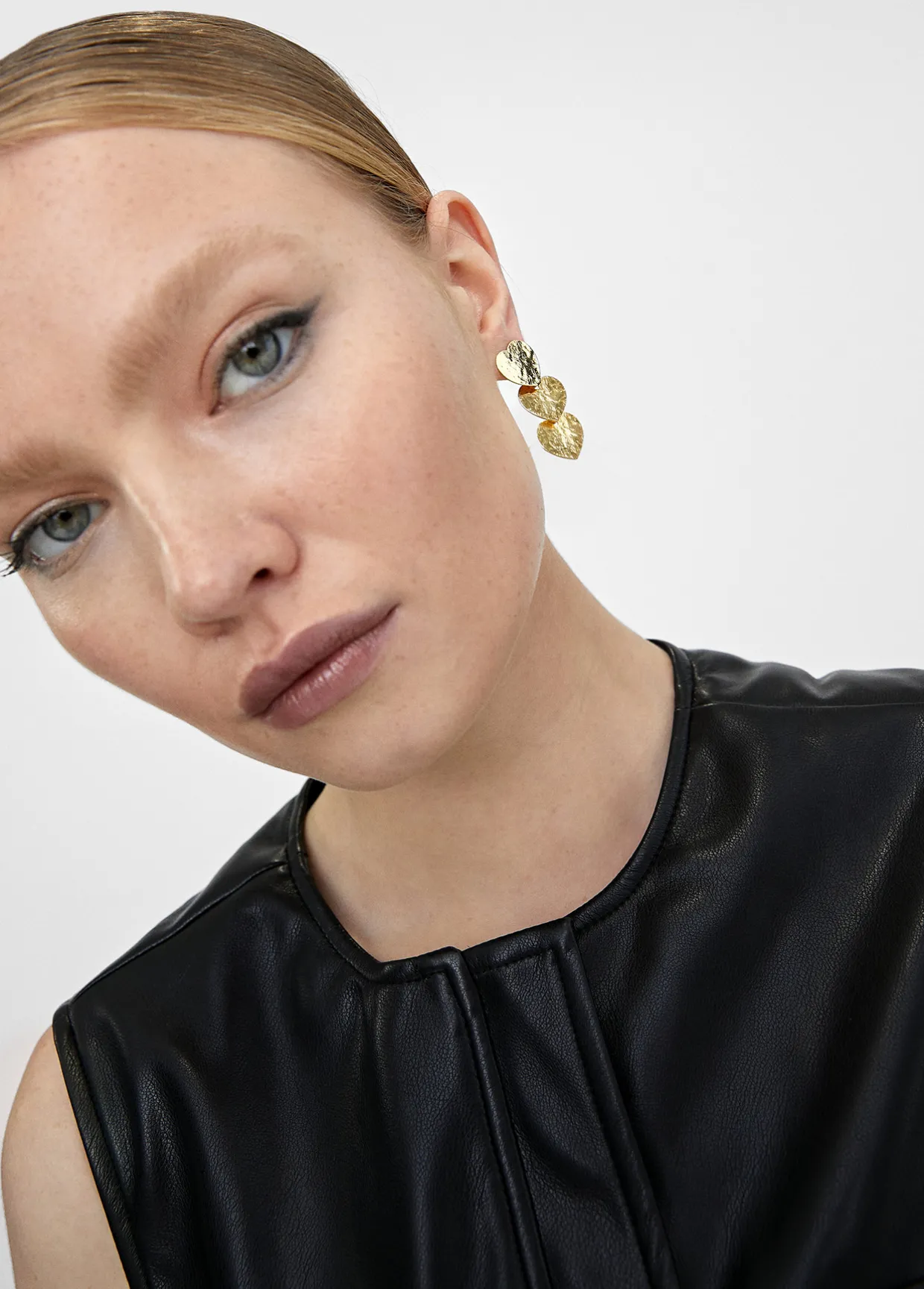 Pendientes de triple corazón dorados y semigrabados.
