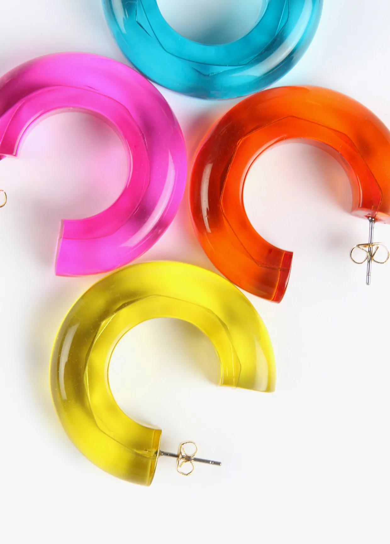 Pendientes acrílicos de aro grueso en diferentes colores.