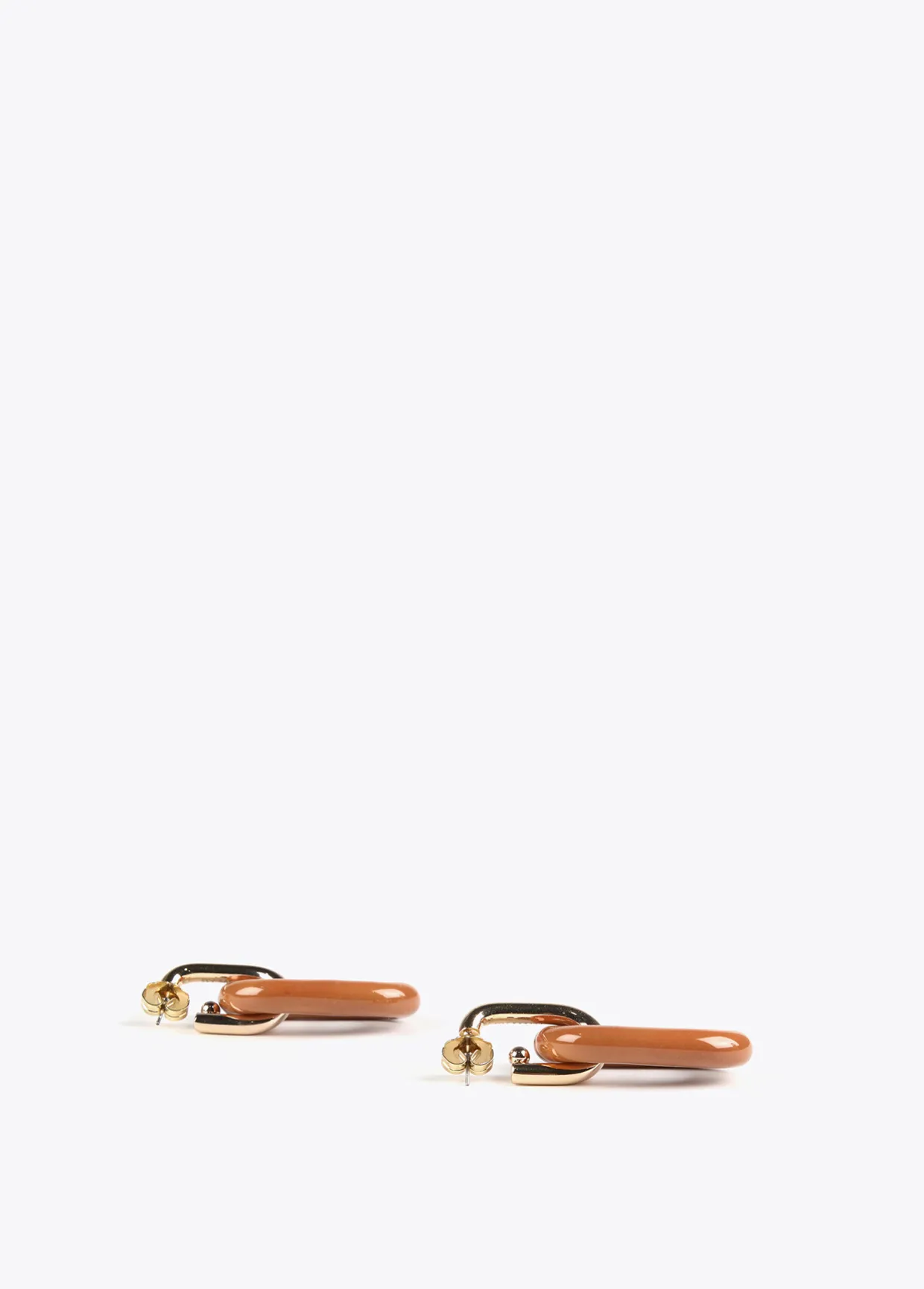 Pendientes dos piezas con maxi eslabon lacado y eslabon dorado abierto.