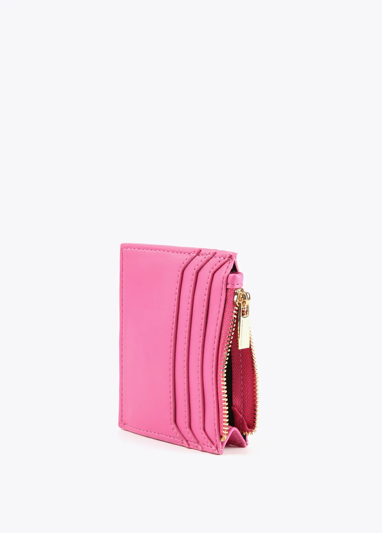 Tarjetero en efecto piel. Logo lacado en parte frontal y bolsillo con cierre de cremallera.
