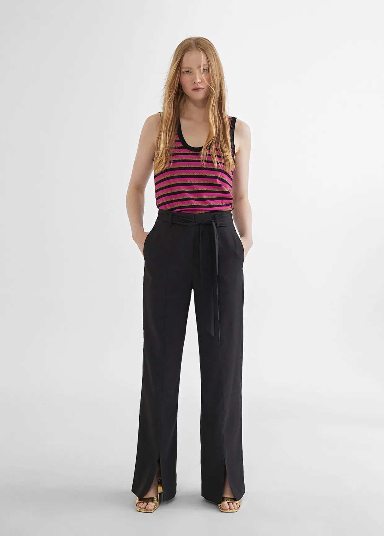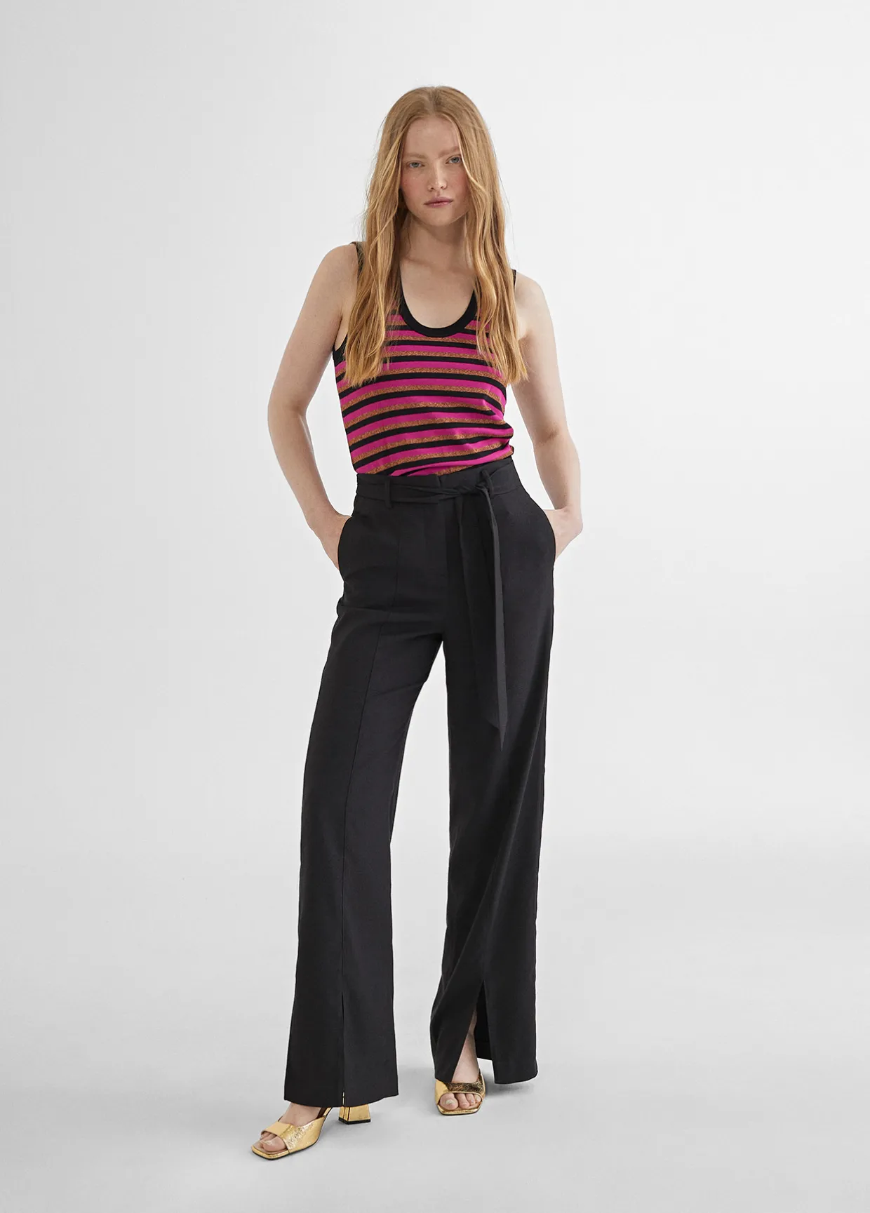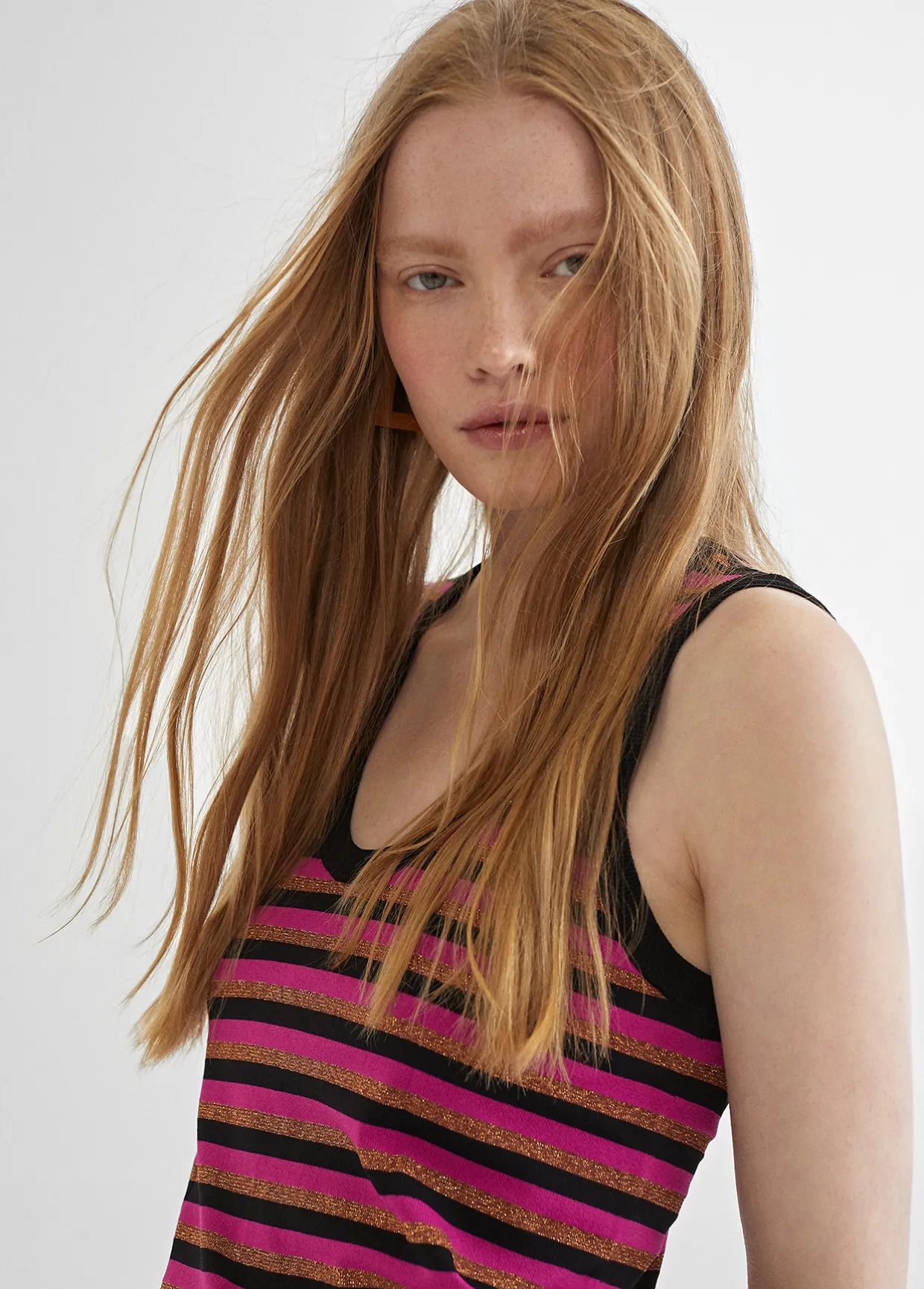 Top de punto ajustado en rayas horizontales con lúrex. Largo hasta cintura.