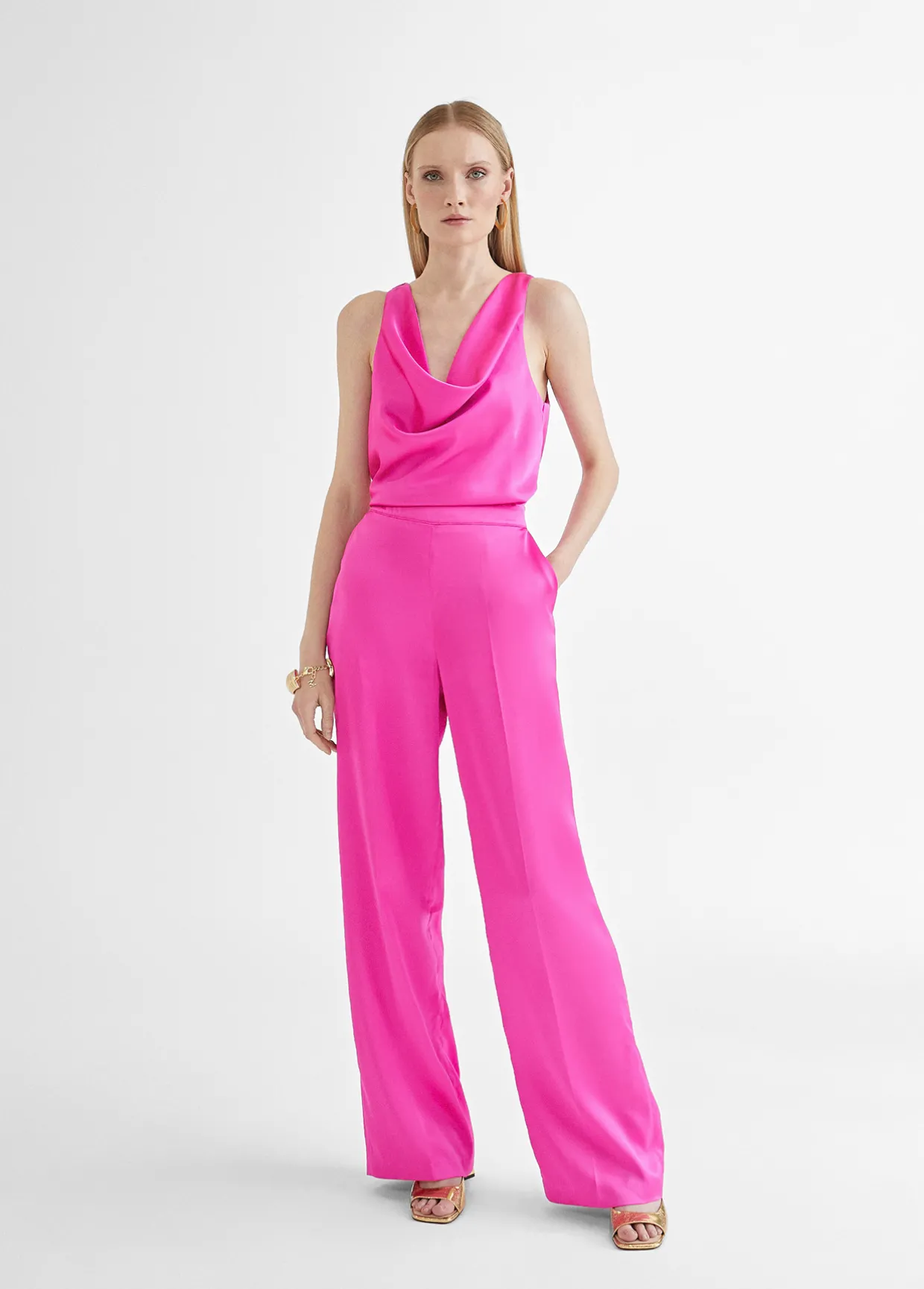 Top de tirante ancho. Efecto satinado y escote drapeado.
