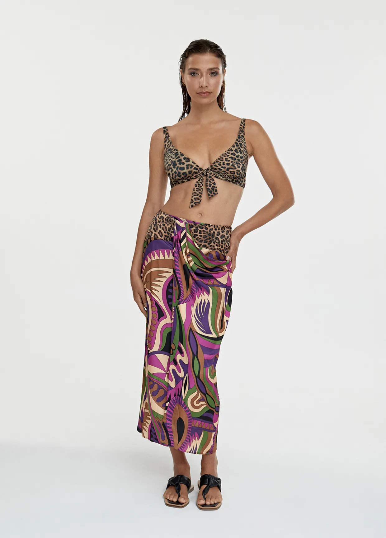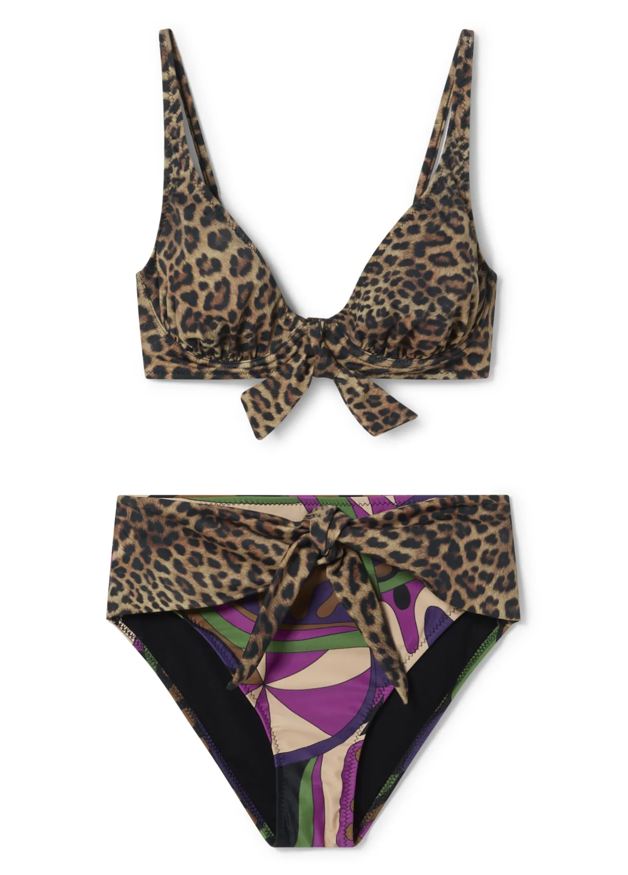 Bikini con estampado animal y Pasley combinados. Tirantes ajustables.
