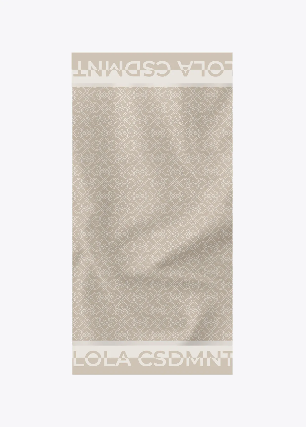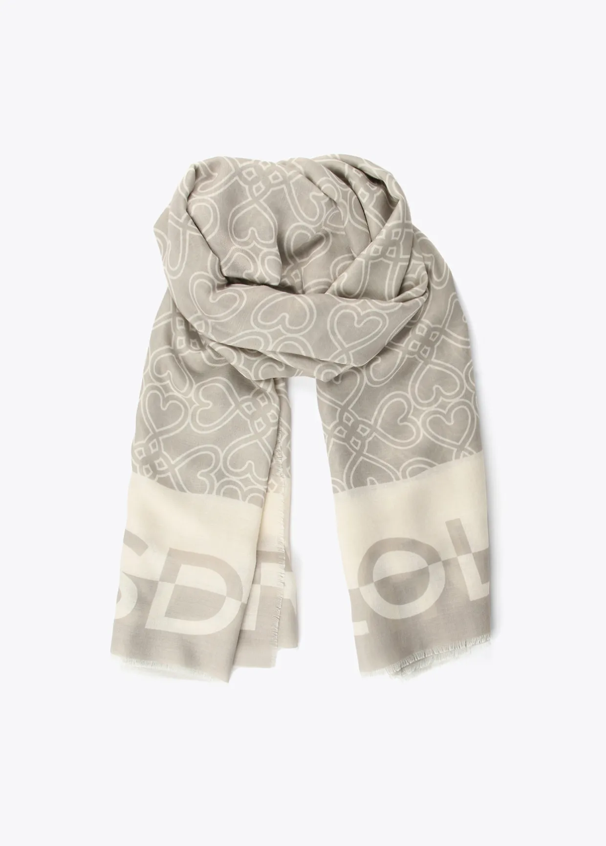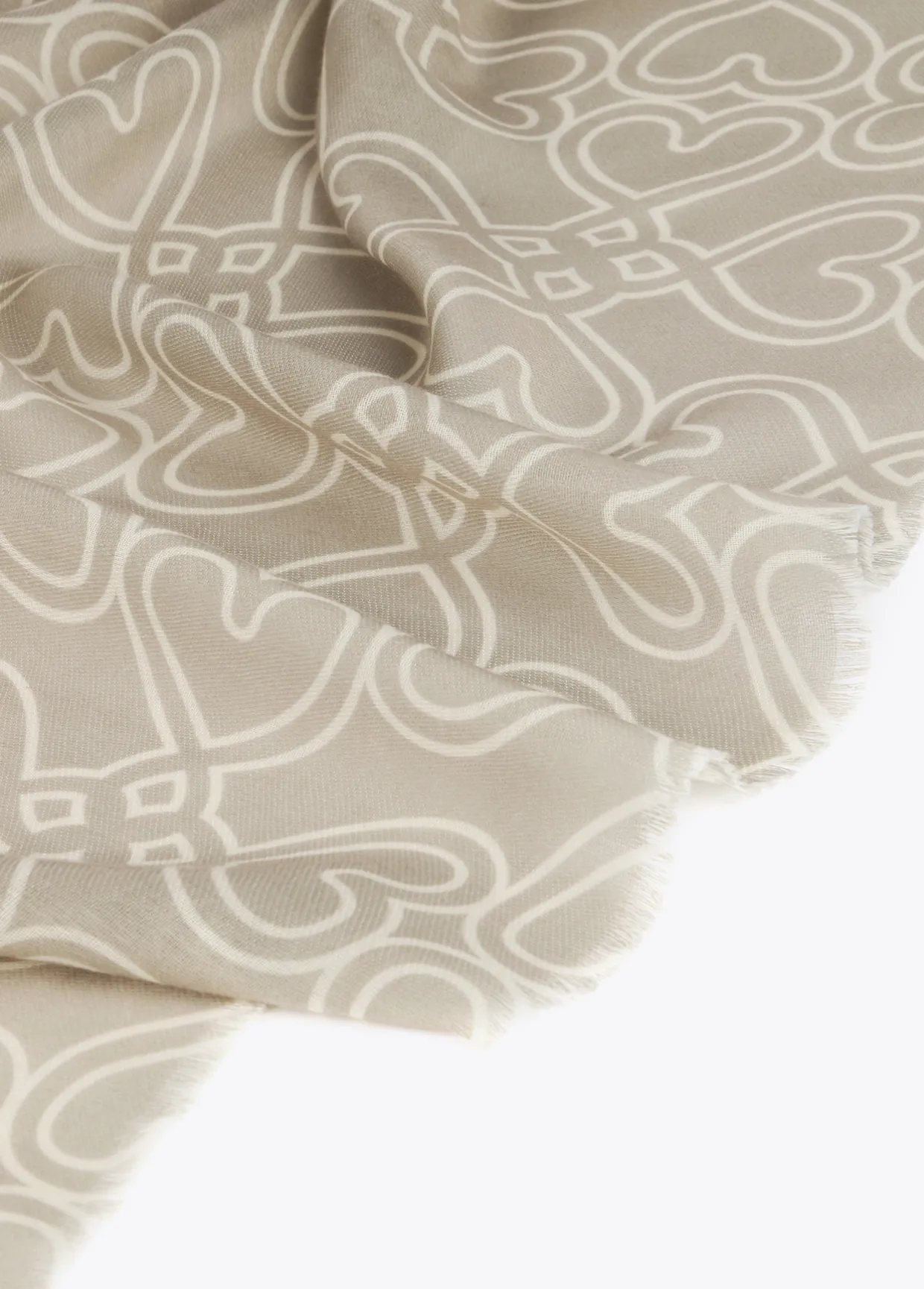 Fular en tonos crudos logotipado y con estampado corazones infinitos.