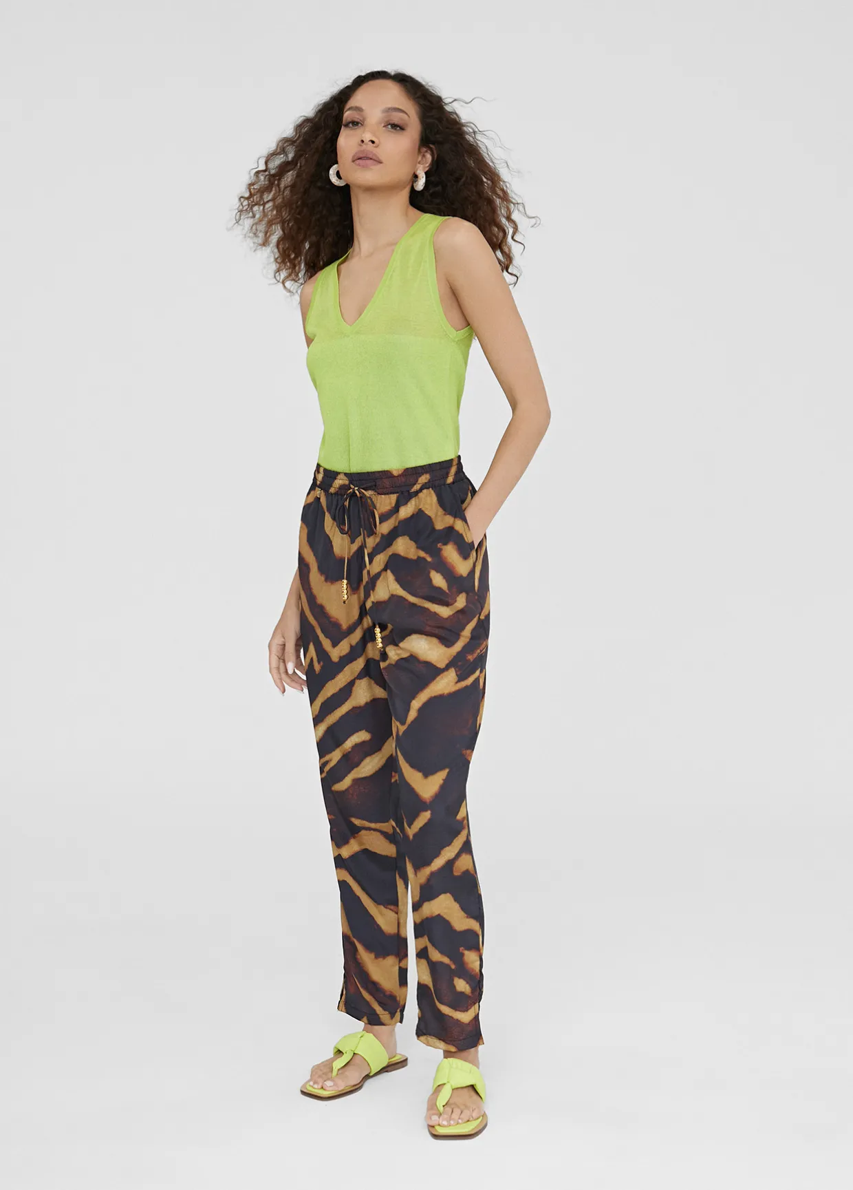Pantalón tipo jogging. Estampado cebra bicolor. Cintura ajustable y bolsillos laterales.