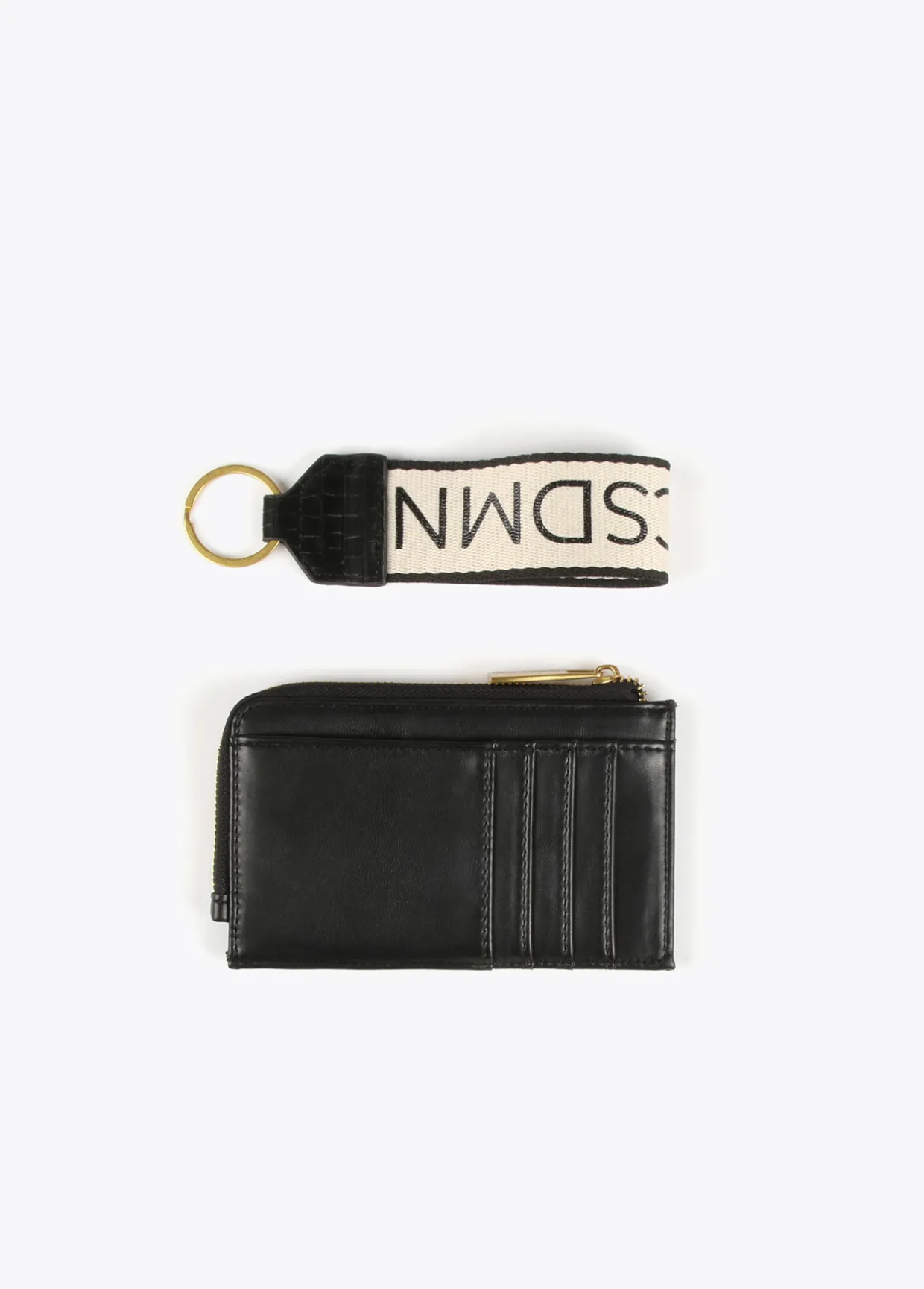 Set compuesto por monedero tarjetero con cierre de cremallera y un llavero logotipado.