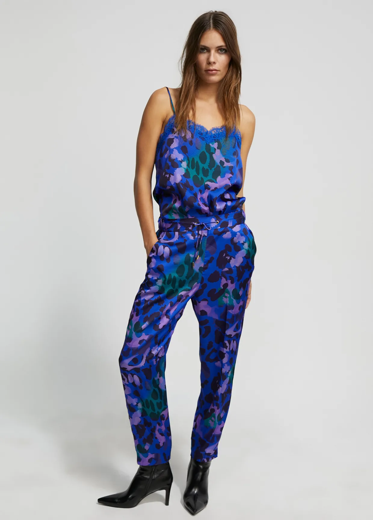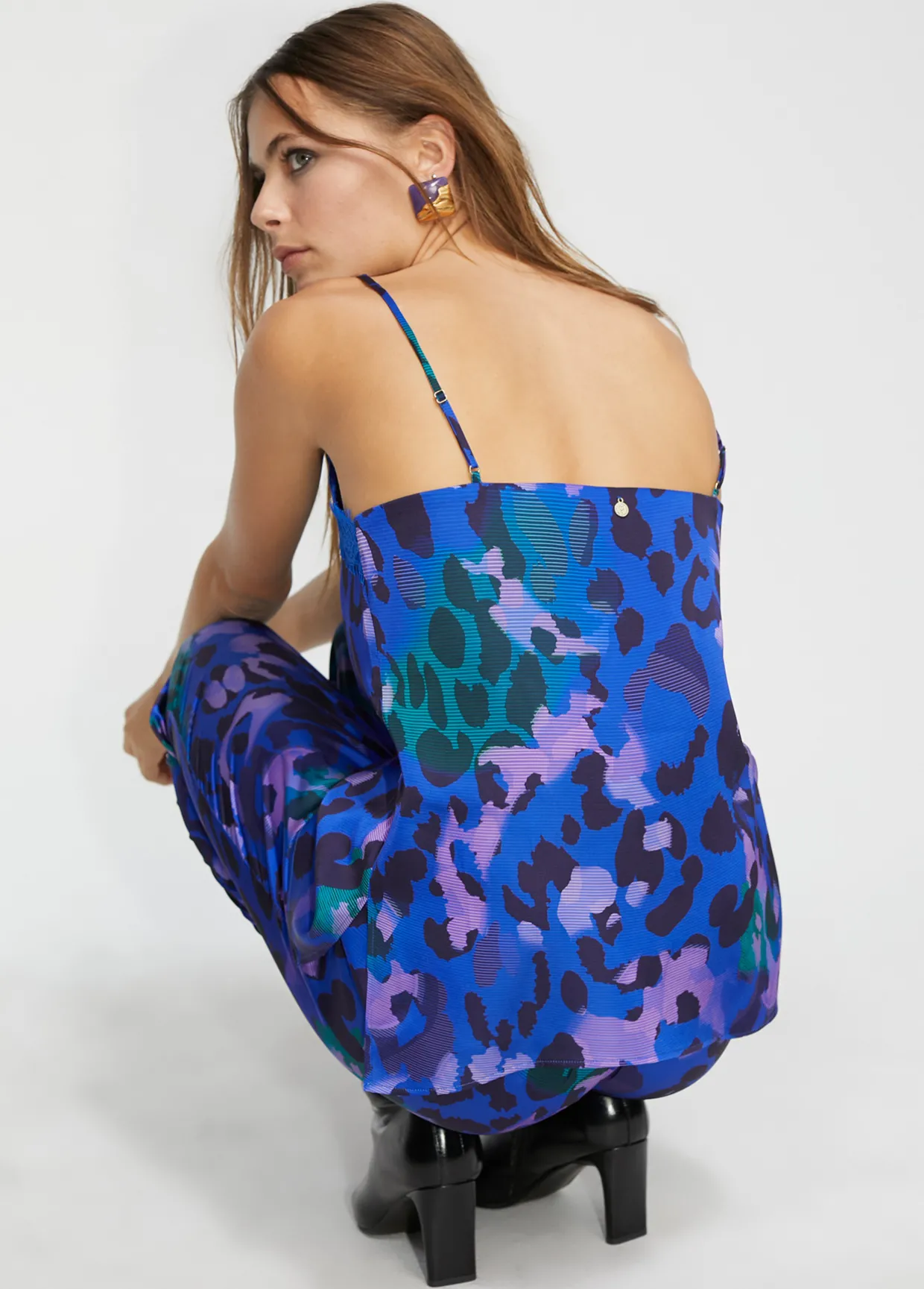 Top lencero en estampado animal print. Puntilla a tono en escote. Tirantes ajustables.