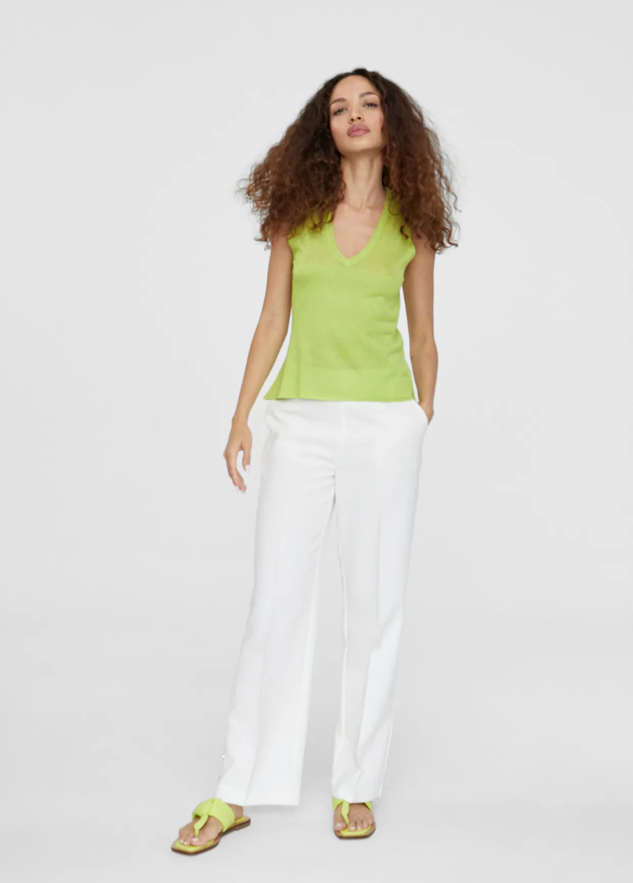 Top de punto mono color. Escote pico y manga sisa. Espalda cerrada.